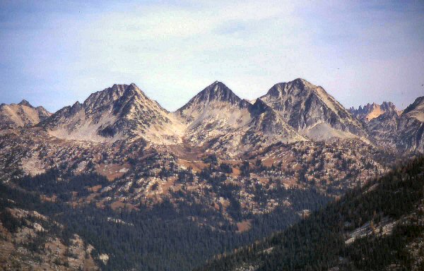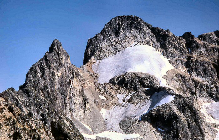 "Mantis Peak" climbed by Stan and Marilyn Jensen on 8.16.1973 is the lower twin summit, just left in this photo.