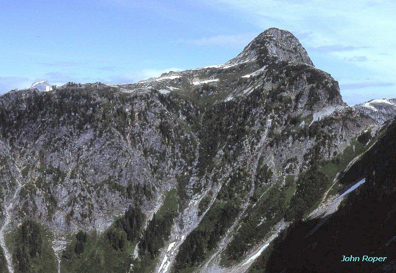 Spire Point on right. Tom Miller has a great full-page shot of this in Cascade Alpine Guide, as well.