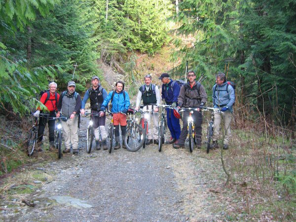 With the sun going down, we hustled down the so-called trail, past a cute 5-foot-deep adit, reaching the bikes at fading light. The others had more steam than I, leaving me in peace to pedal out alone in darkness inadequately illuminated with the soft light of my LED headlamp. En route I did a end-over header, breaking my ski pole on the impact, as my front wheel hit an unseen rock. The boys were glad to see me back, if only because my car was blocking their exit. 4.5 hours down.