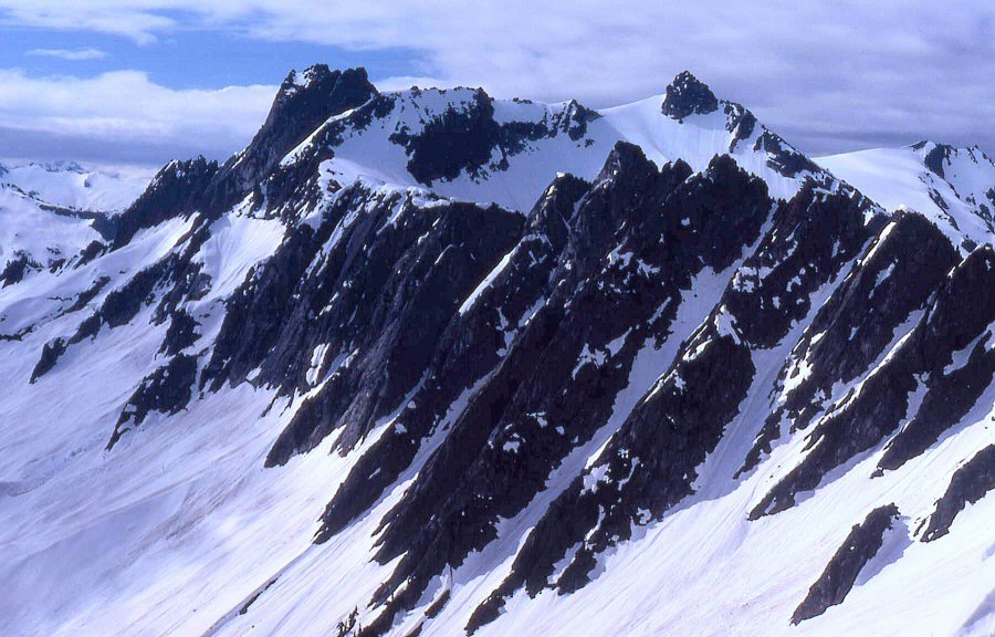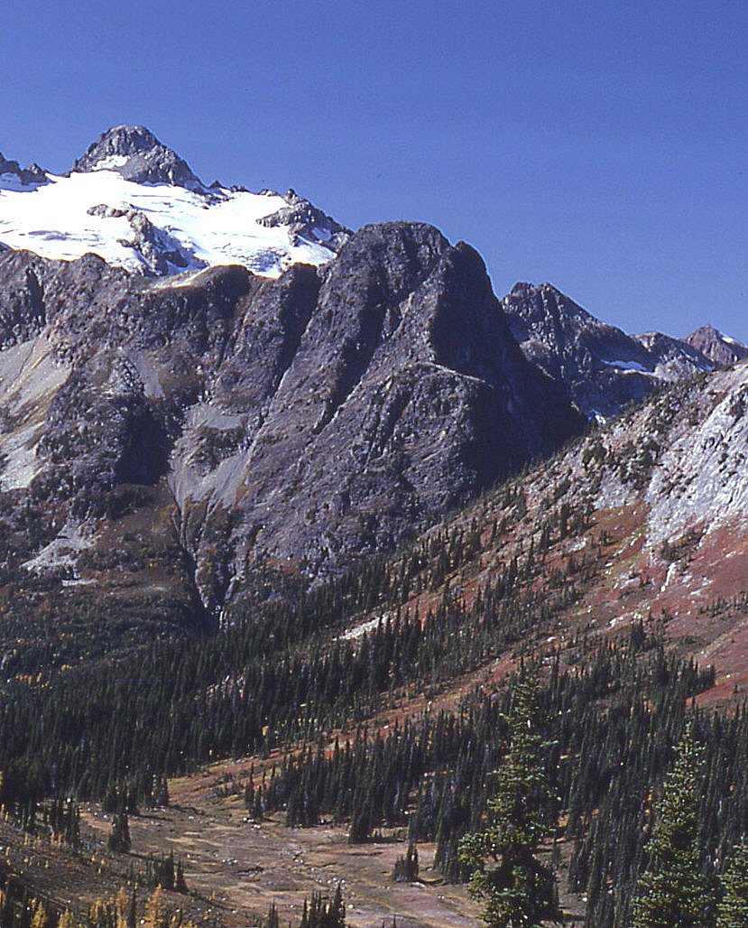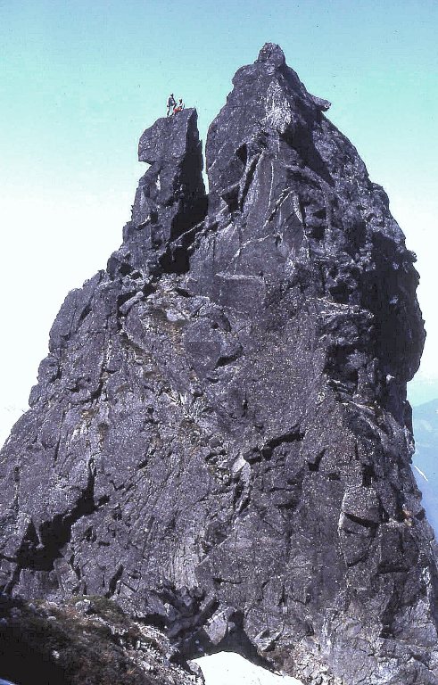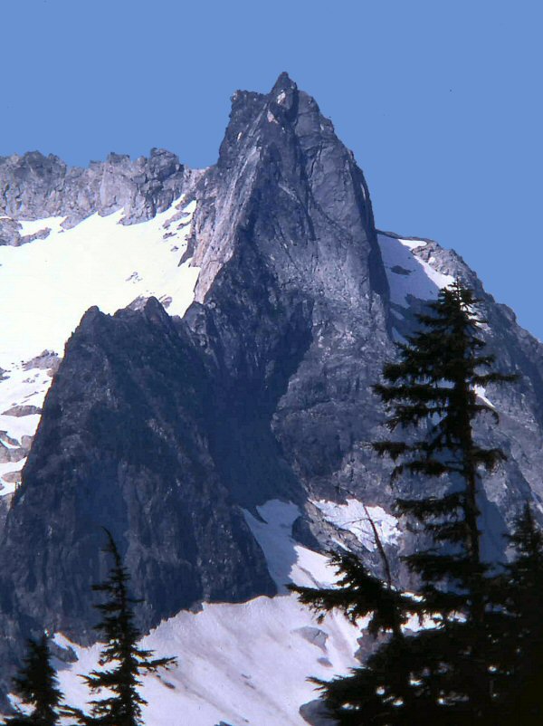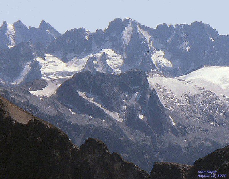 Right foreground crags. Fallen Angel' is left center, Baksit" is the rock pyramid right center.