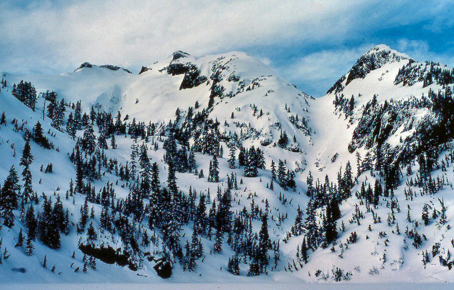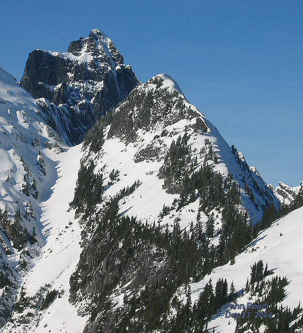 on right, original Damnation Peak left, Triumph through notch