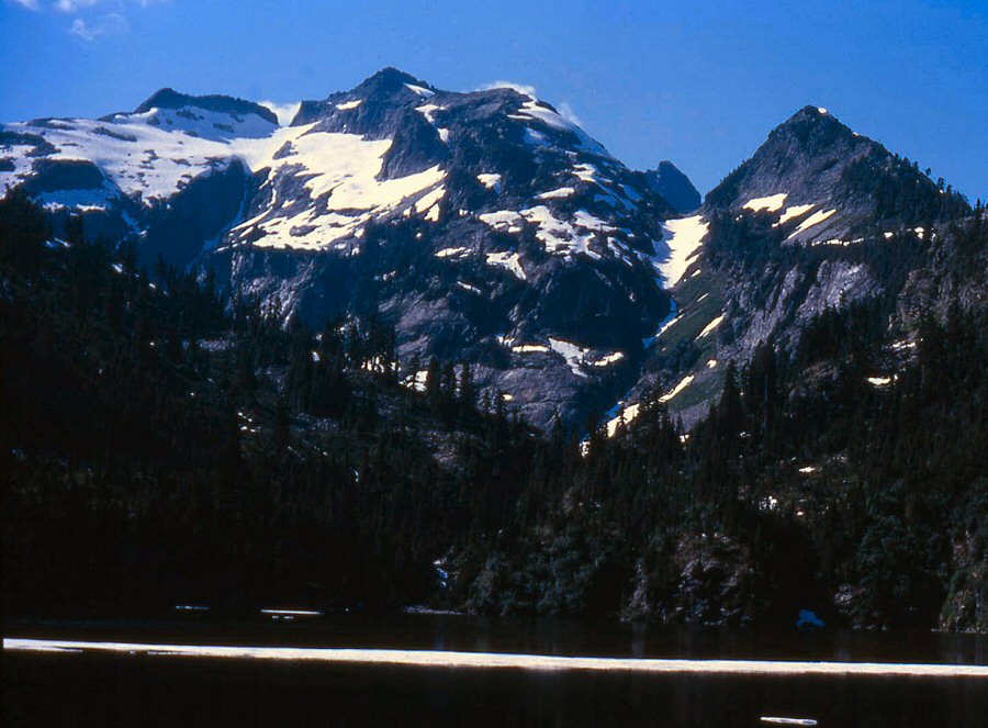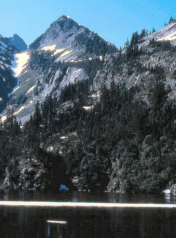 Thornton Lake in foreground, Mount Triumph through left notch