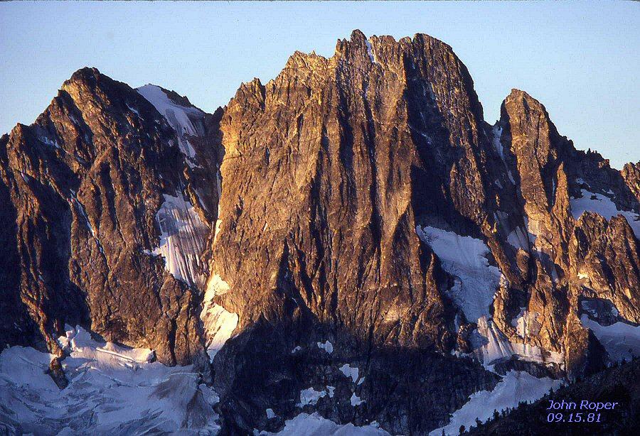and famous NE Buttress of Goode starting from left hand rock toe, from the NE. John "Lizard" Lixvar finished his challenging list on Goode in 1987. Ten years later, in 1997, Jeff Hancock finished here as well.
