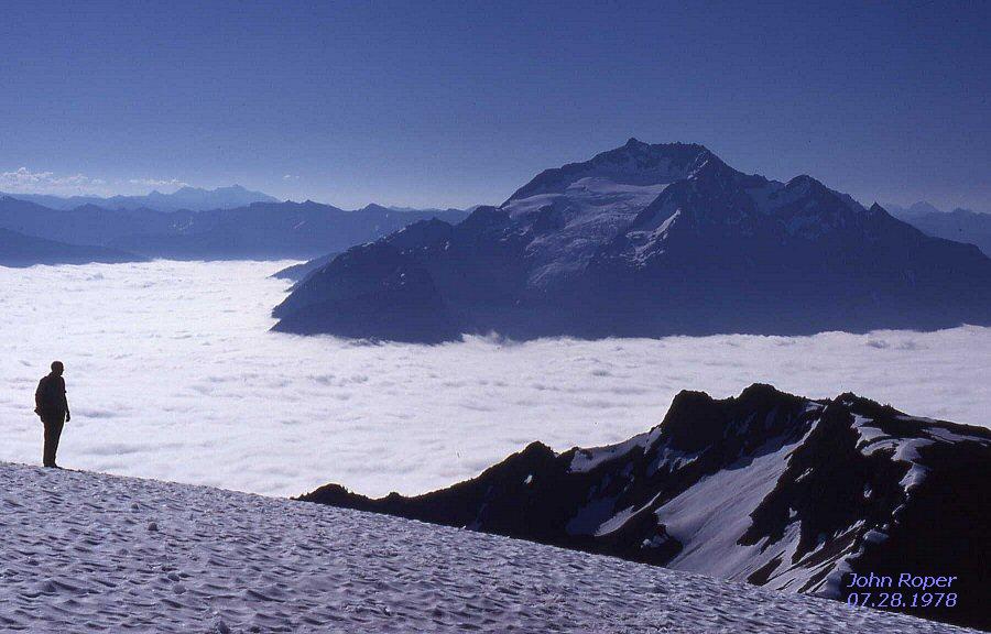 Joe Medlicott ponders the Ross Lake valley fog from Genesis Peak.