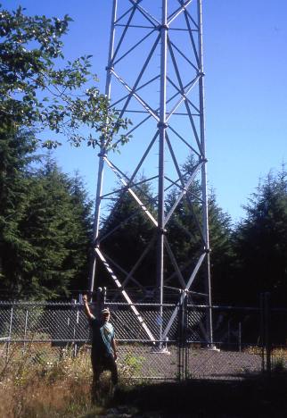 After the above unsatisfying exercise, we returned to the car and followed good roads to the top of Walville Peak 2417' on the south (Half Moon Creek) side of the ridge. Even though this summit has 1657' of prominence, the greatest in Pacific County, and has a communications tower under construction, there were no views. A side road north before the summit allowed us a look north.