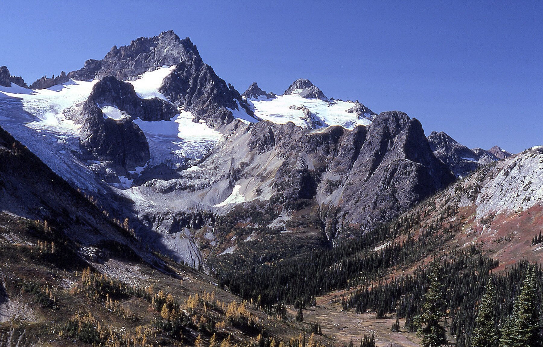 highest peak on left. Thieves Peak' is the spike, then Ragged End in center, and Pachyderm on right