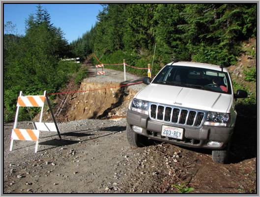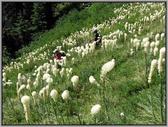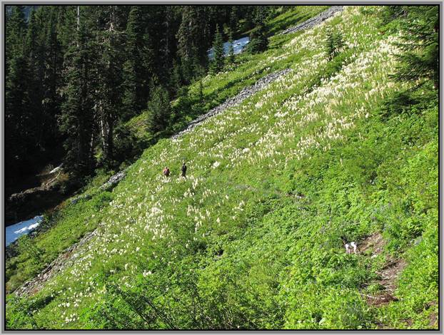 We approached up the Carbon River road and took the bridge over the Carbon River just before entering MRNP, driving 6.7 bumpy miles to the end of the Cayada Creek road, elevation 4400 feet. A washout about a third of a mile before the Bearhead/Summit Lake trailhead gave some pause. We were the only car in the lot, coming and going.