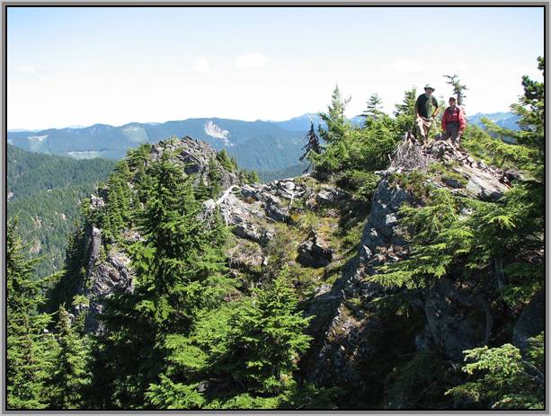 We went over to check the route on the east summit and found it will require a rappel into a gap before a class 3+ climb to reach that top.