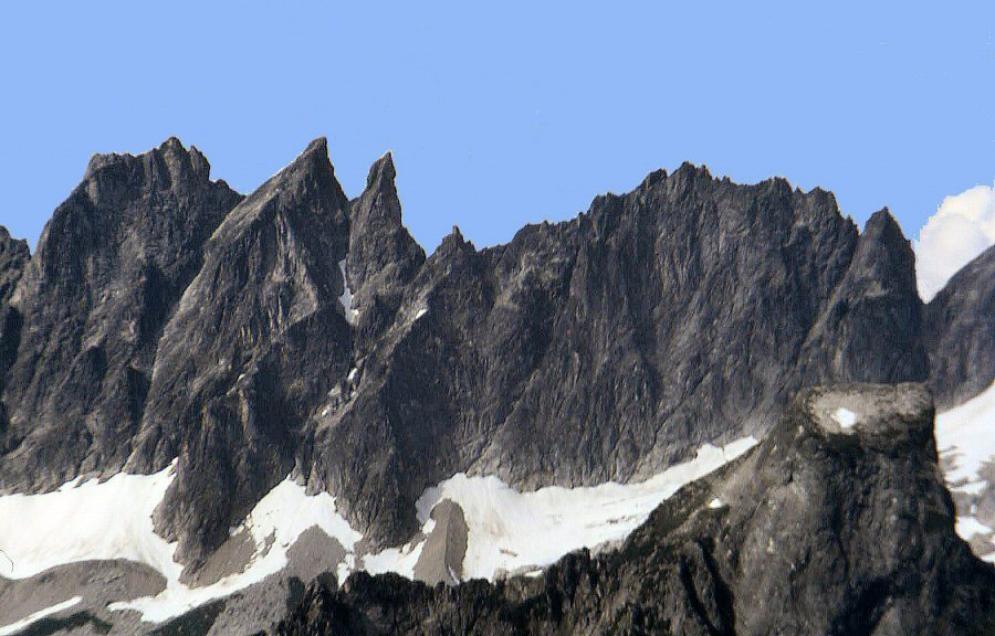Not much, but that's all that was left unclimbed in the Southern Pickets in 1973, well, except for The Turret', right above the top of The Stump, left of the Terror Col (see July 22, 1984).