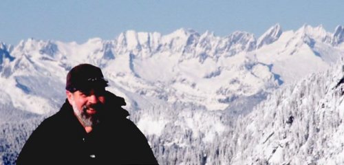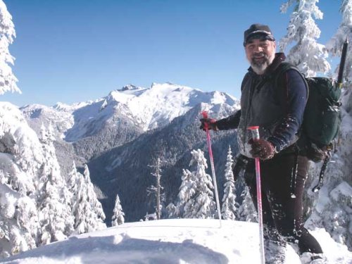 Peak 2/23/03 -John on the summit with Snowking and Pickets in the