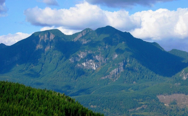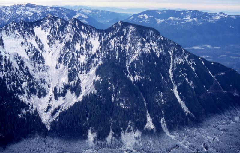 --Three distinct summits, though ones only a bump enthusiast could love, lie between Lake Isabel and the Wallace River, about four miles NE of Gold Bar. They are easily recognized from the Skykomish valley on HW 2 from before and beyond Sultan, appearing as a triple summit, upriver (right) of Mount Stickney and the deep Wallace River cut. Despite their strategic location, they have long been overlooked because they are unnamed, and have only modest elevation.