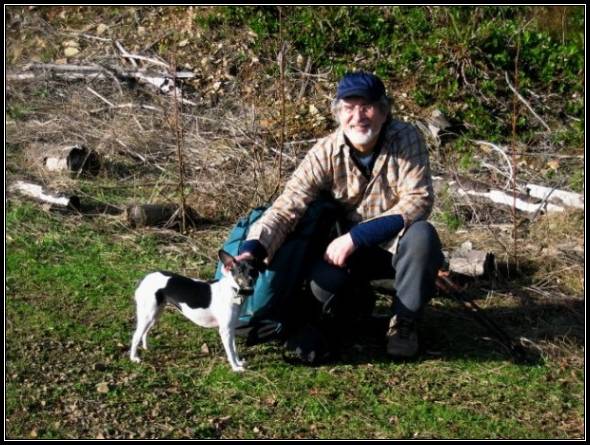Sofy and I drove up through Granite Falls and farther along the Mountain Loop Highway to Harry's place, just outside Robe. His barking terriers greeted us first, happy to see Sofy, one of their distant cousins. Keegan and Sofy raced up and down the chain-link fence separating them before Harry came out to lead us to his library-living room which looked a bit like a scale model of the Stilly foothills in the form of one-to-two foot high mountains of vertical paper stacks covering every table (and most every other flat surface), arranged in piles understandable to the venerable historian.