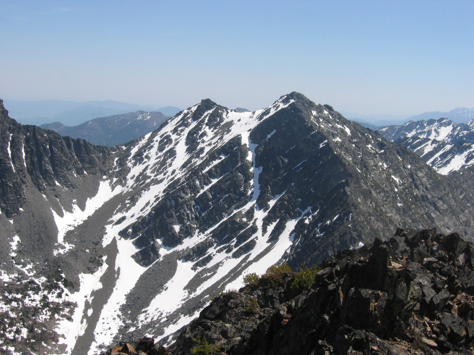 Interestingly, even though Shelokum 8069 and its neighbor to the immediate SE, Peak 8082 (Wolf Head or Lamont Mtn), both Top 200 Peaks in WA by the 400' Rule, and with respective, respectable prominences of 709 feet and 402 feet, are only hinted at in Beckey's Cascade Alpine Guide 3 (under the description of North Gardner, p. 283),“There are high subsidiary points on ridges, S, WSW, and NE of the true summit.” The newest version of CAG-3 (Third Edition) will be out shortly, so take a look soon and see if they get their dues there. Steve Fry once called this “Stegosaurus Mountain,” for obvious reasons.