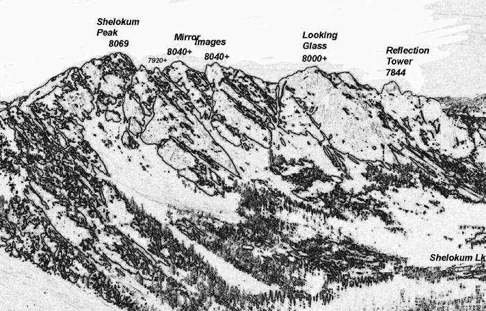 Shelokum is Chinook jargon for “mirror.” Shelokum Peaks are a hall of mirrors.